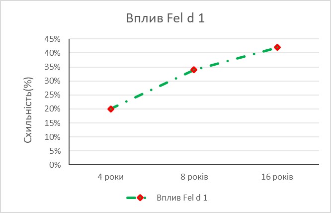 - Fel d 1 – видоспецифічний алергокомпонент, маркер первинної сенсибілізації;