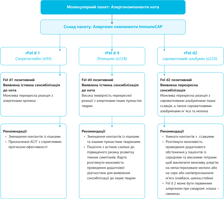 Наприклад, Молекулярний пакет «Алергокомпоненти кота» містить: