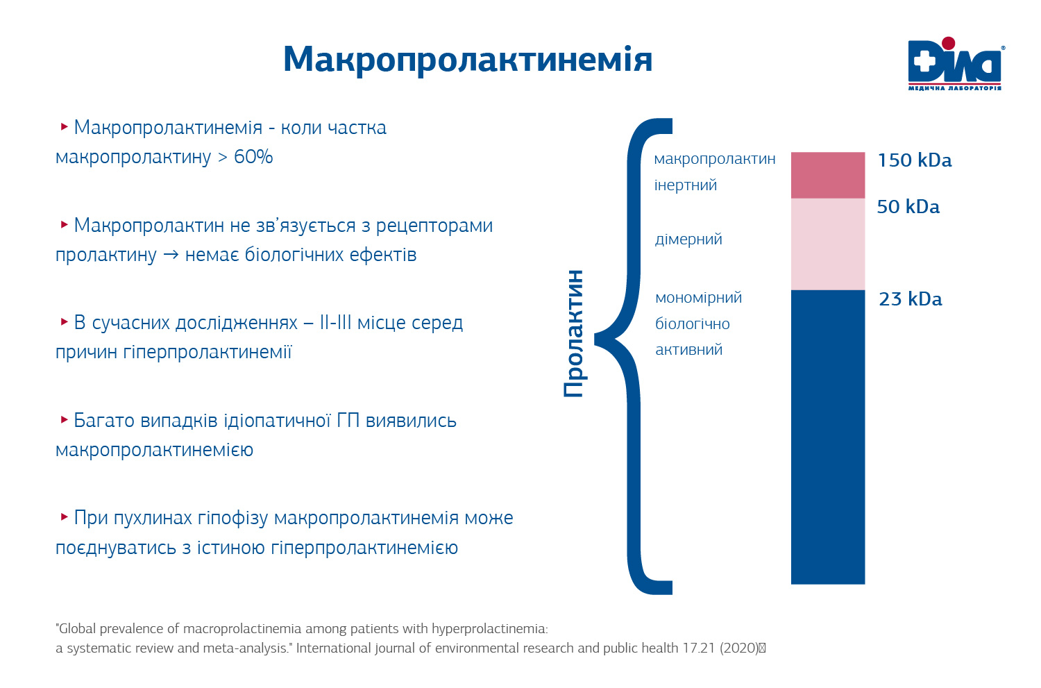 При діагностиці гіперпролактинемії не слід забувати про таке явище як макропролактинемія, коли доля неактивної форми (макропролактину) складає понад 60%. Глобальна частота макропролактинемії в середньому – 18,9%, а у жінок з гіперпролактинемією вона сягає 42%. Макропролактиемія – це доброякісний стан, що не потребує лікування. Макропролактинемію слід виключати в кожному випадку розбіжності клінічної картини пацієнтів з їх рівнями пролактину.