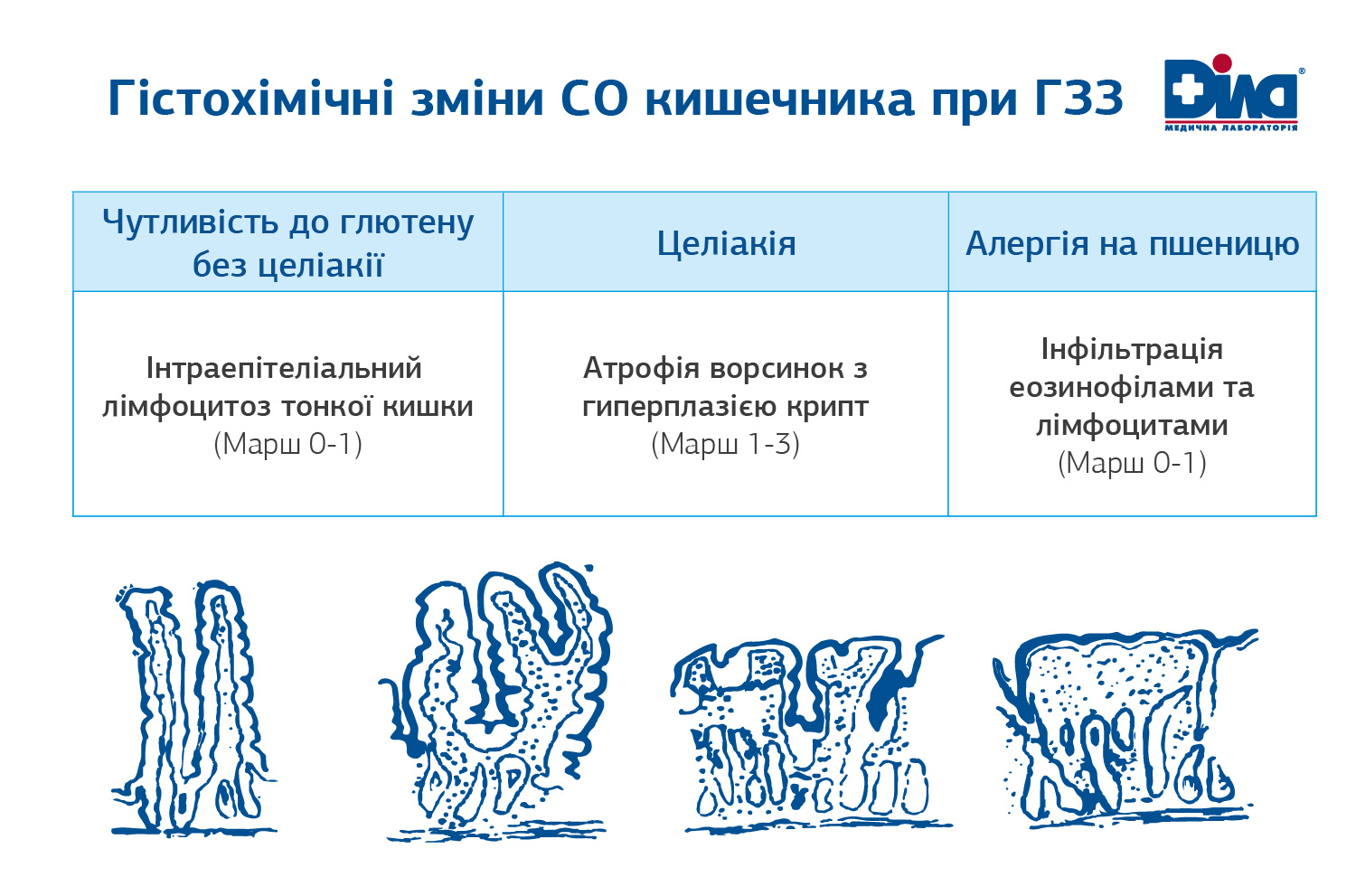 Гістохімічні зміни слизової оболонки кишківника при ГЗЗ можуть бути подібними між собою на початку захворювання - по класифікації (Марш 0-1).