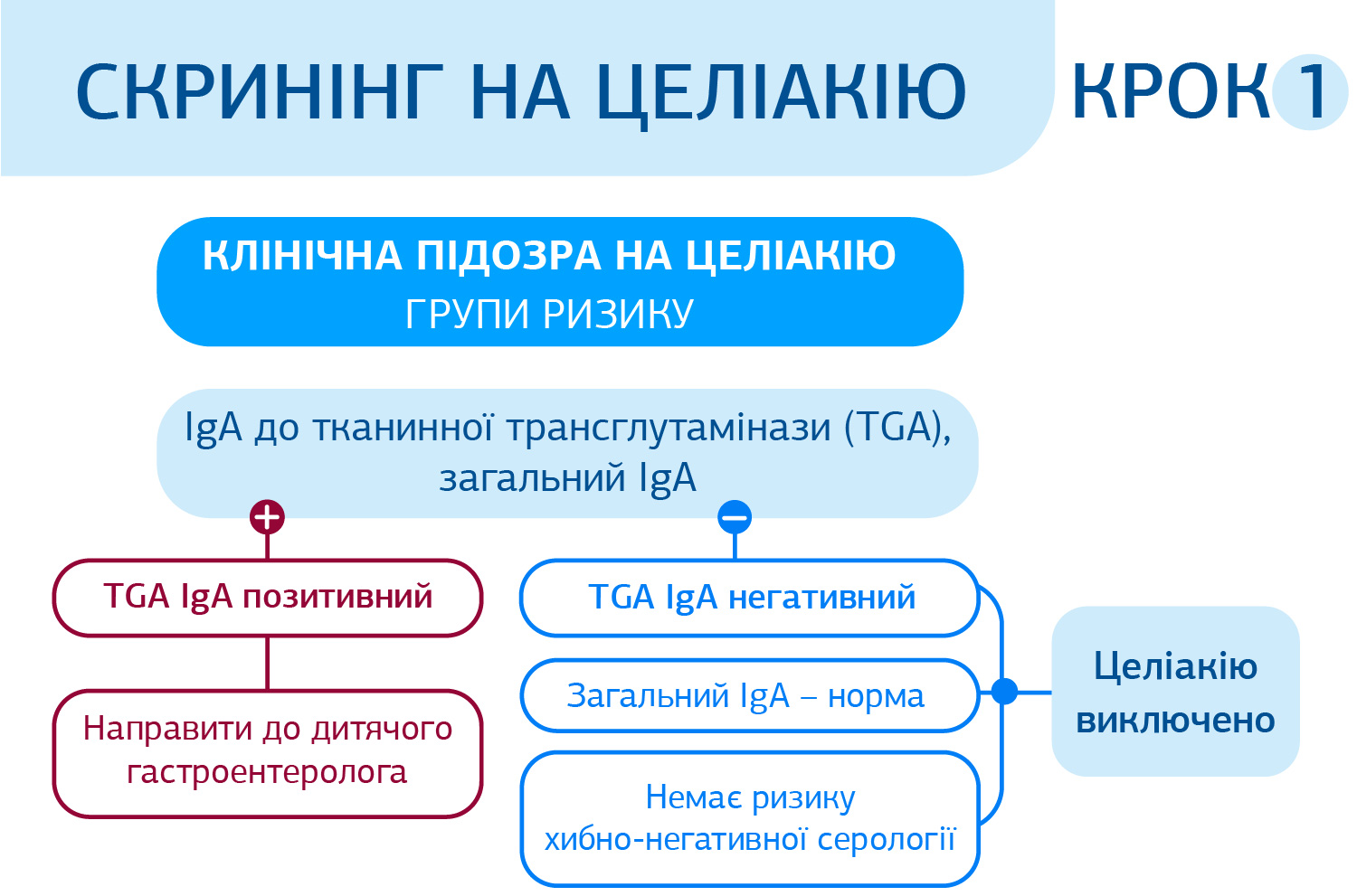 Алгоритм скринінгу целіакії: представлений у вигляді 2 кроків.