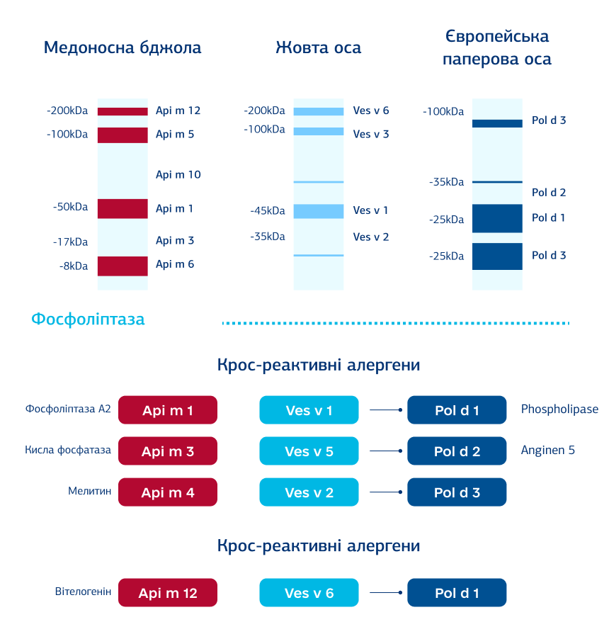 Останнє десятиліття принесло значний прогрес у вивченні отрут комах завдяки протеомним і транскриптомним технологіям. На сьогодні офіційно зареєстровано 76 компонентів отрути як алергенів (www.allergen.org). Молекулярна характеристика та гетерологічне продукування деяких із цих компонентів отрути дозволили раціонально розробити панелі індивідуальних алергенів для молекулярної діагностики алергії на отруту перетинчастокрилих. Ідентифікація низки маркерних алергенів покращила точність діагностики sIgE, яку тепер можна використовувати для розрізнення, у більшості випадків, справжньої сенсибілізації до бджіл та ос (рис.2)