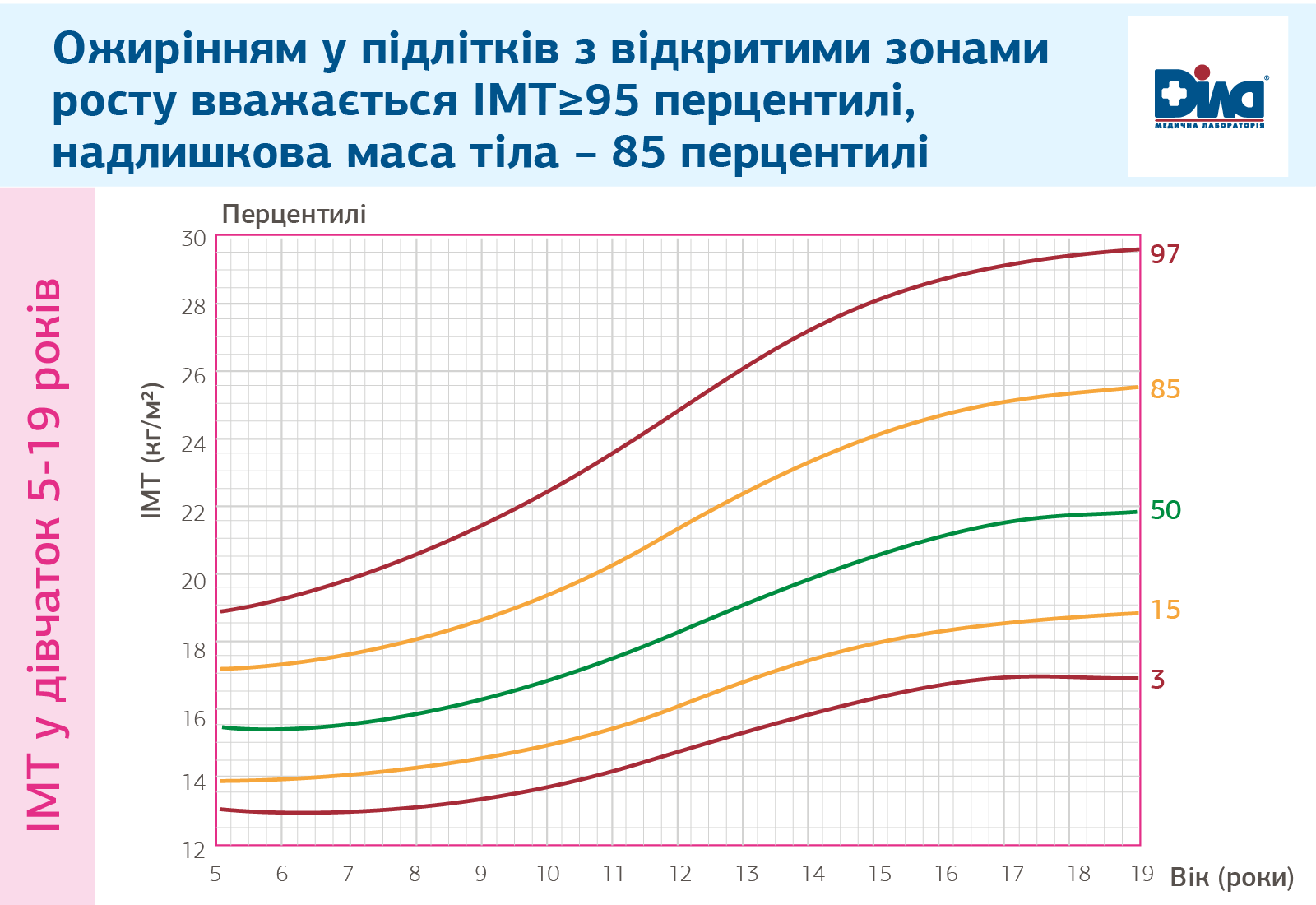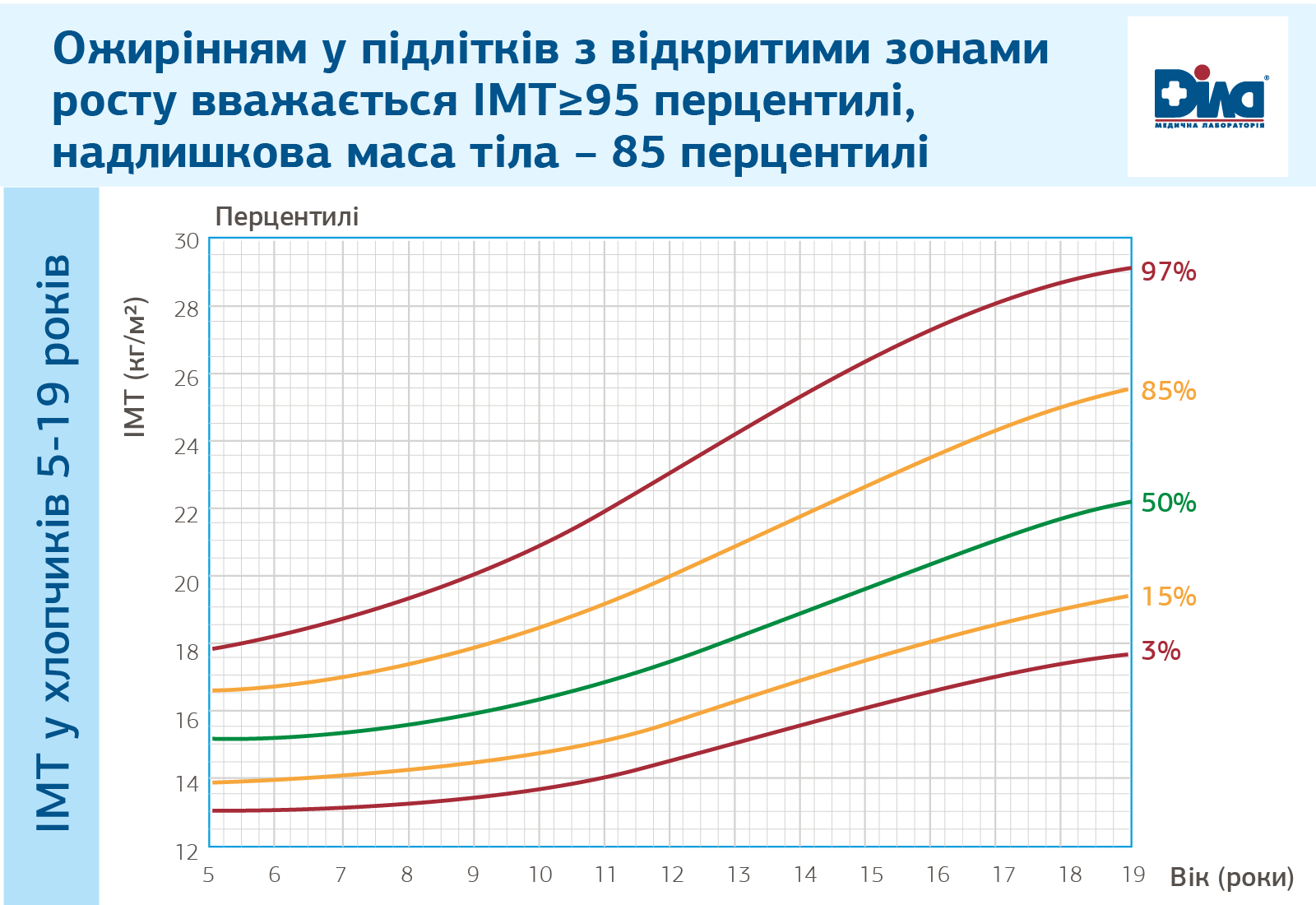 У дітей з відкритими зонами росту ІМТ визначається відносно їх віку, статі, та маси тіла за стандартними перцинтильними таблицями. Ожирінням вважається ІМТ ≥95 перцинтилі, надлишкова маса тіла – 85 перцинтилі.