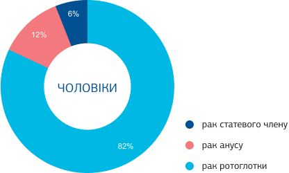Структура нових випадків ВПЛ-асоційованих раків у жінок і чоловіків в США за 2021р.
