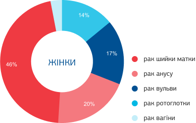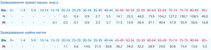 В Україні Канцер-реєстр демонструє дані, що свідчать про суттєве зростання частки захворювання на рак прямої кишки та ануса серед жінок віком від 55 років, у порівнянні з аналогічними показниками захворювання на рак шийки матки.