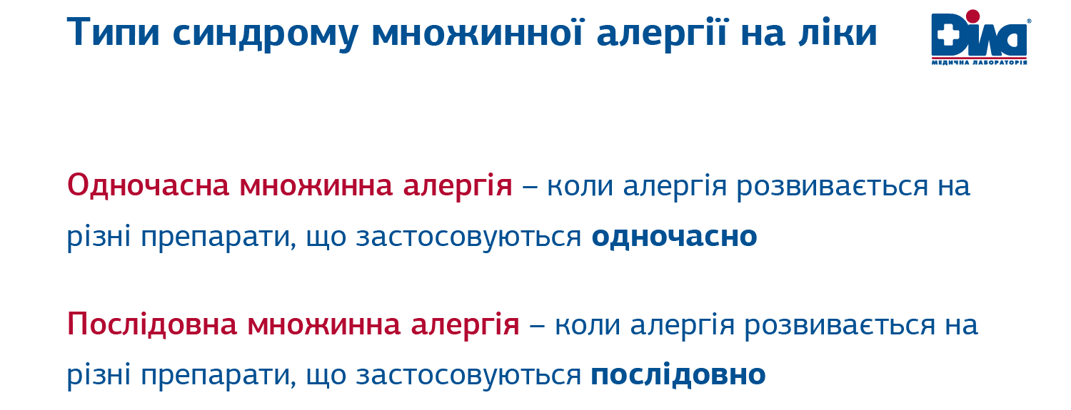 Синдром множинної алергії на ліки – це наявність у пацієнта симптомів, що вказують на розвиток алергічної реакції більше до 2-х або більше лікарських засобів, що стосується різних класів.