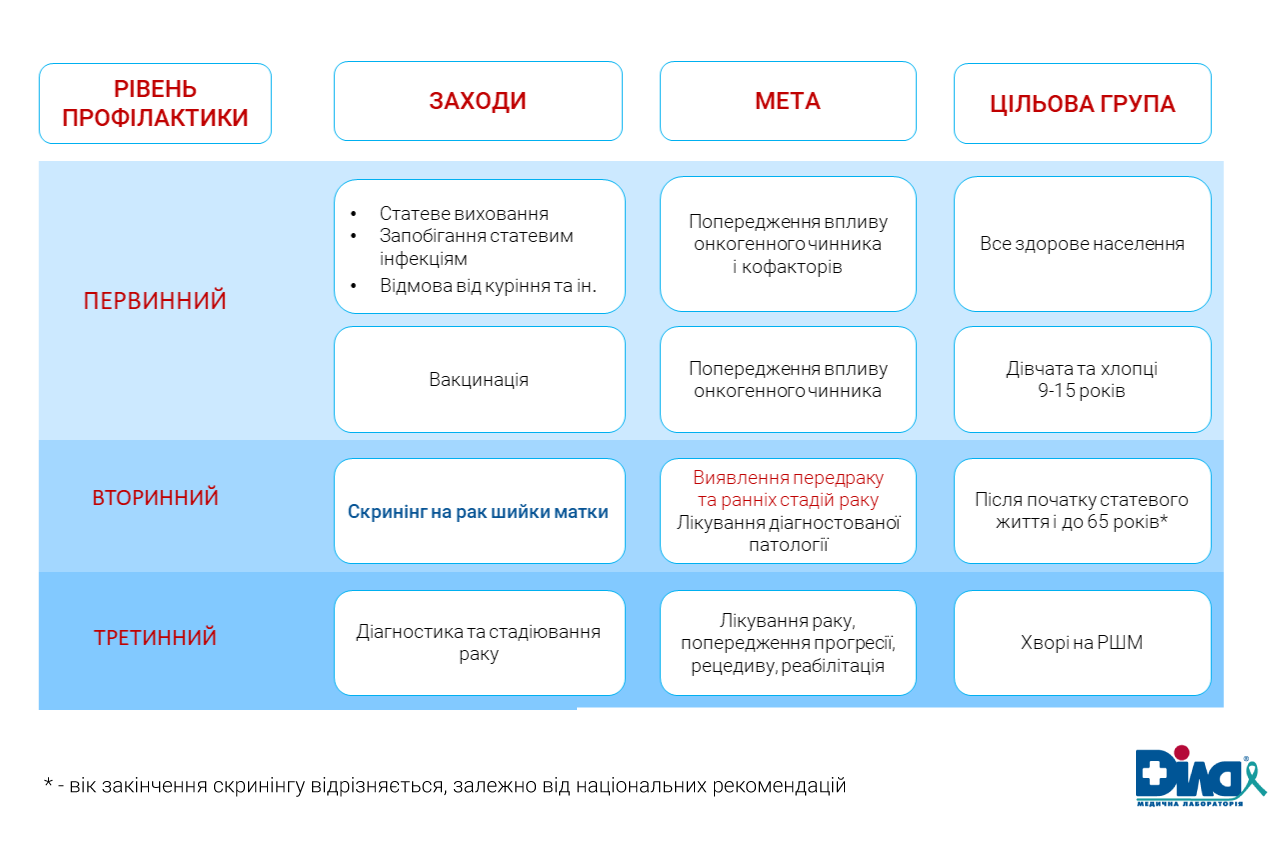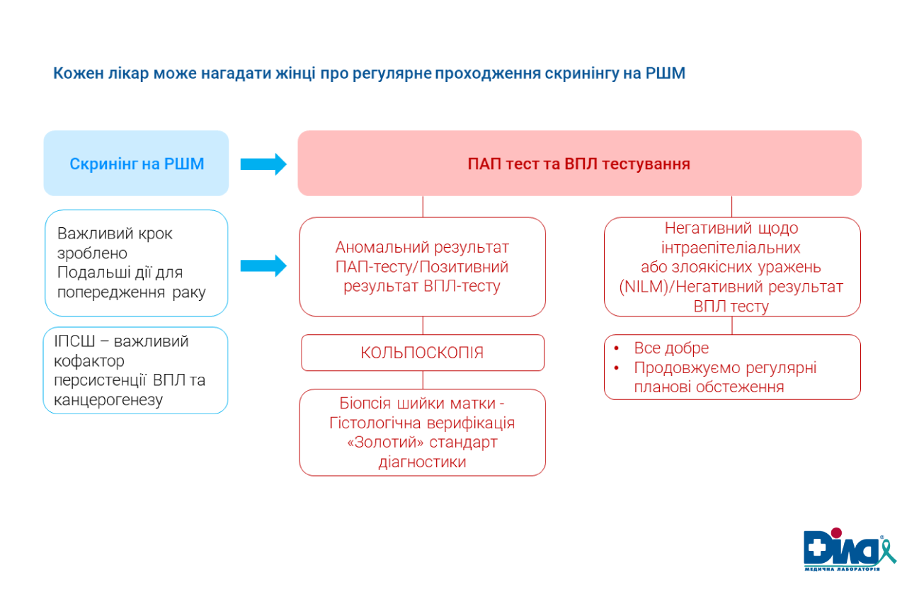 Починаючи з 30 років жінкам доцільно проводити ко-тест (Пап-тест методом рідинної цитології та ВПЛ-тест) для максимально ефективного скринінгу.