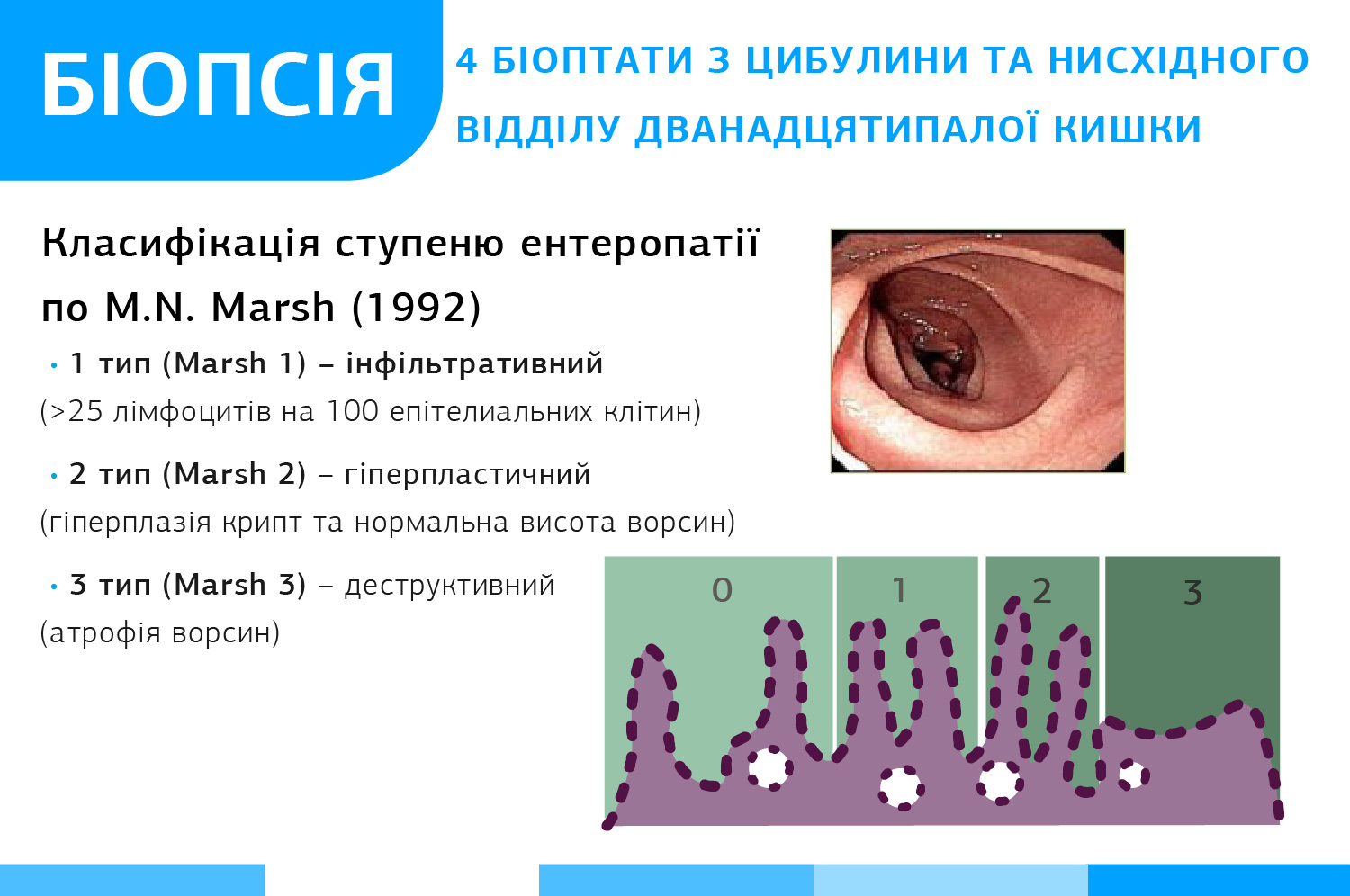 - Серологічне тестування позитивне, наступний крок – БІОПСІЯ з тонкого кишківника.