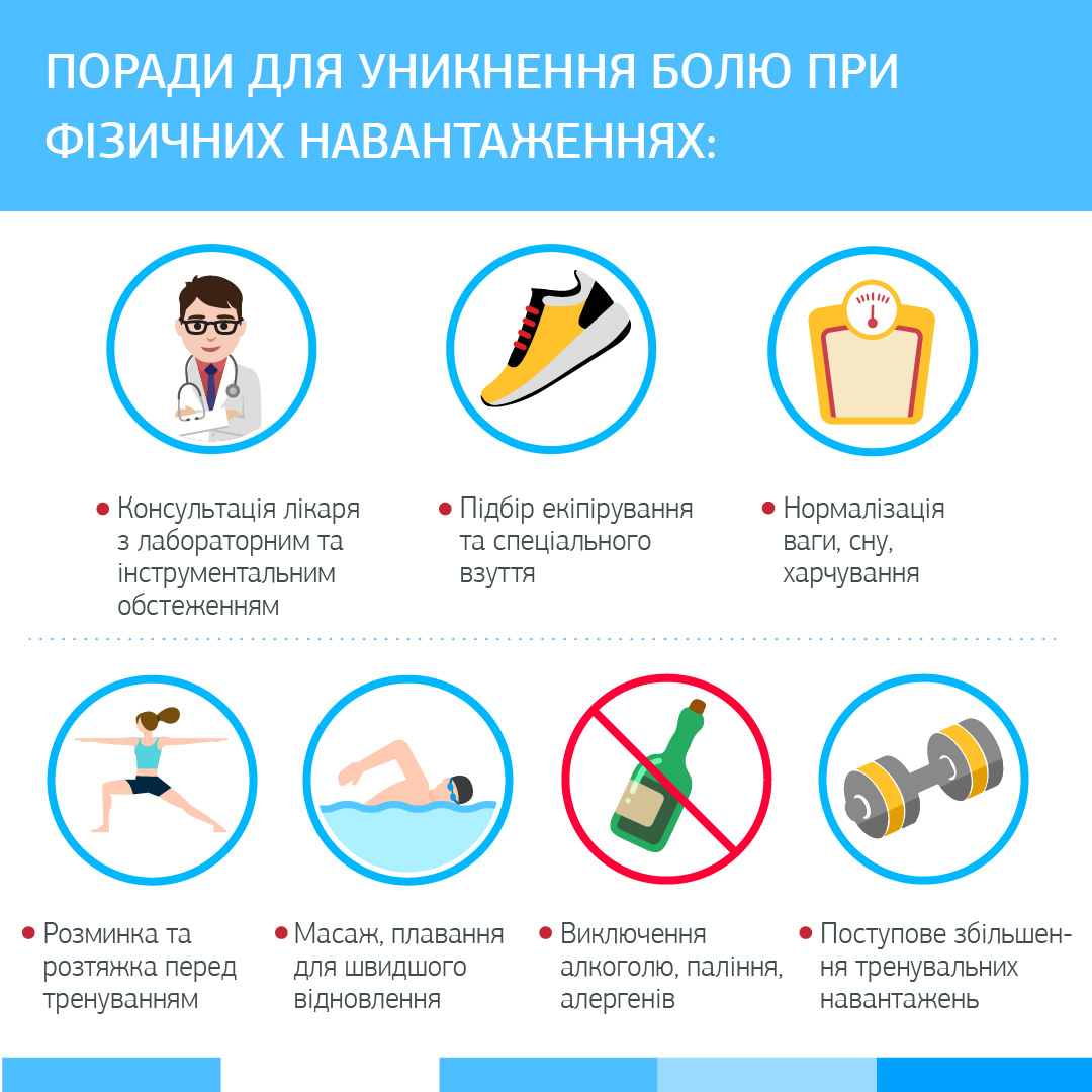 Які ж поради будуть корисними для максимального уникнення болю при фізичних навантаженнях: