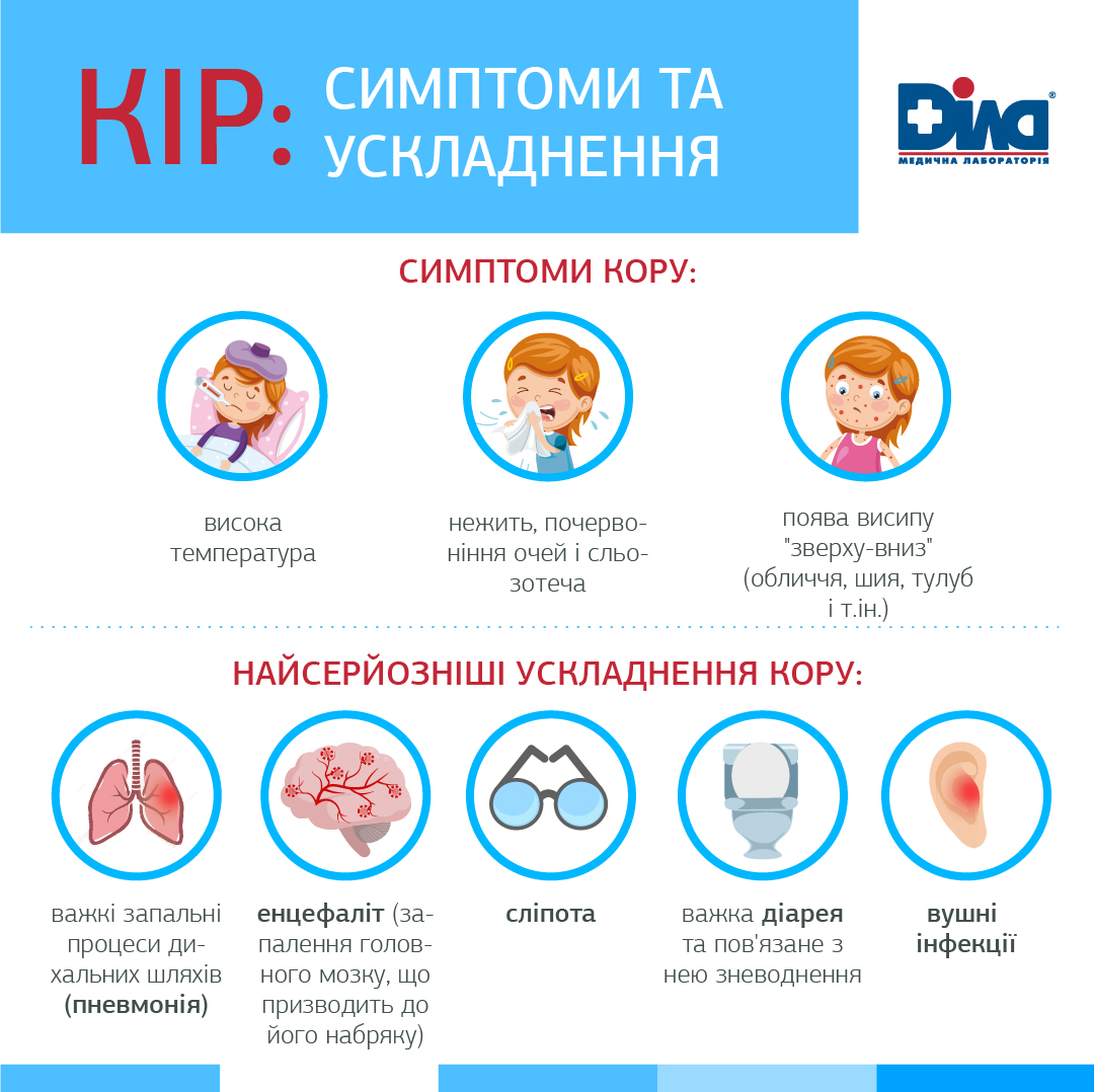 Через кілька днів висип поширюється на обличчя та верхню частину шиї й поступово розповсюджується по тілу вниз. Однак не всі випадки хвороби мають описану вище класичну картину. У таких ситуаціях визначитися з діагнозом лікарю допомагає дослідження «Антитіла до вірусу кору, IgМ»: захисні білки, які визначаються в крові людини на 4-7 день після появи корової висипки.