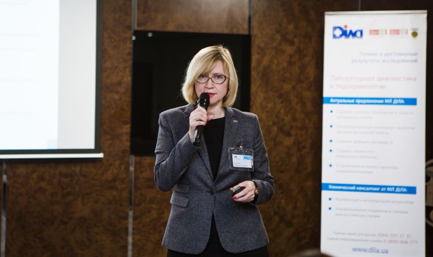 Традиционно с приветственным словом к профессиональной аудитории обратилась медицинский директор МЛ ДІЛА Сидорова Ирина Вячеславовна. В ее докладе были освещены проблемные вопросы диагностики заболеваний щитовидной железы и факторы, влияющие на интерпретацию результатов гормонального обследования, а именно - при оценке функционального состояния щитовидной железы врач должен учитывать факторы интерференции и суточной, сезонной вариабельности показателей.