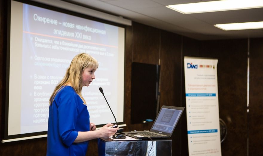 Заведующий отделом профилактики и лечения сахарного диабета Украинского научно-практического центра эндокринной хирургии, д. мед. н. Татьяна Юрьевна Юзвенко в своем докладе сообщила о патогенетических механизмах взаимосвязи между гипотиреозом и ожирением. Представлены уникальные данные собственных исследований, современные международные алгоритмы обследования больных с сочетанной патологией, которые позволят практикующему эндокринологу провести адекватную коррекцию состояния и улучшить качество жизни больного.