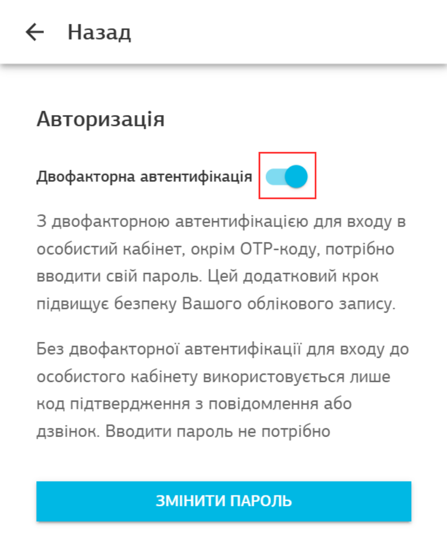 С двухфакторной аутентификацией для входа в личный кабинет, помимо ОТР-кода, нужно вводить свой пароль. Этот дополнительный шаг повышает безопасность вашей учетной записи.