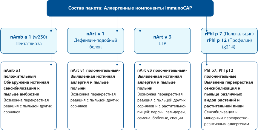 Например, Молекулярный пакет «Аллергокомпоненты сорняков» имеет в составе: