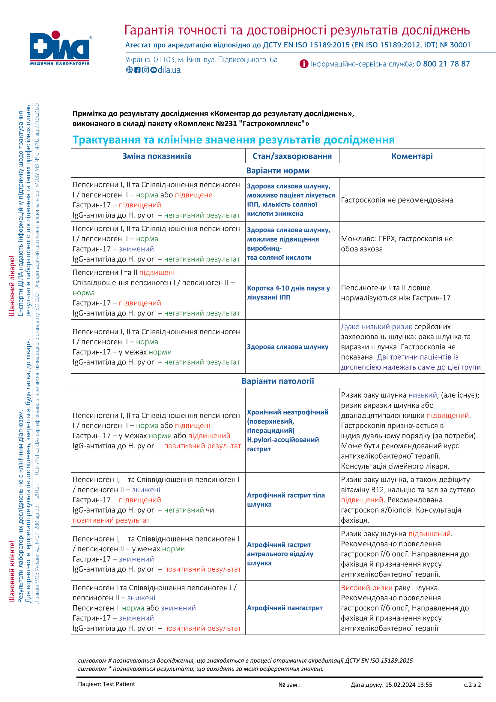 Комплекс №231 позволит своевременно оценить состояние слизистой желудка, провести скрининг атрофического гастрита, диагностику хеликобактерной инфекции и назначить эффективное лечение и обоснованное дообследование.