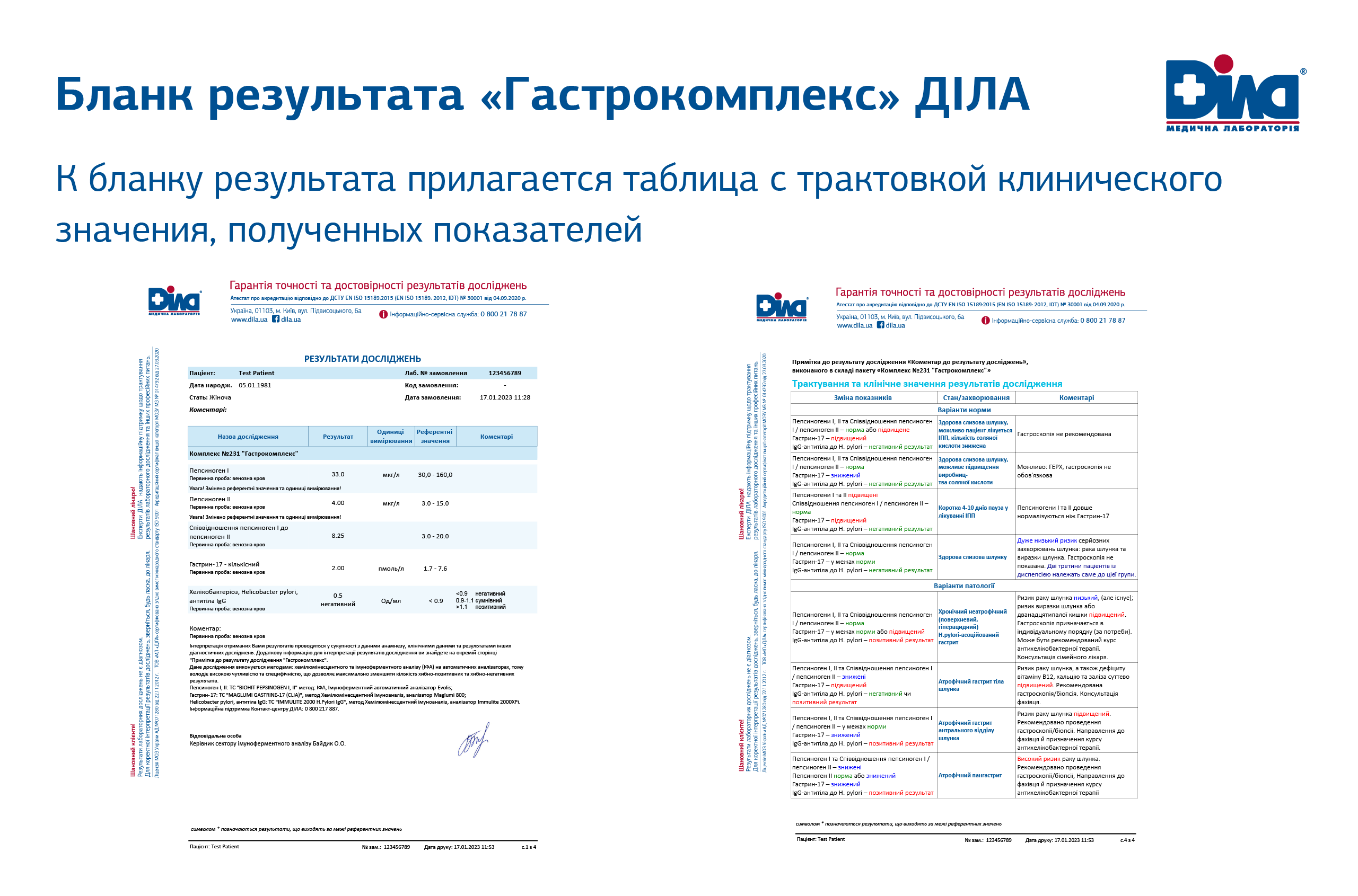 Для дифференциальной диагностики с заболеваниями желудка ДІЛА предлагает «Гастрокомплекс» – комплексное исследование крови, включающее такие маркеры как: