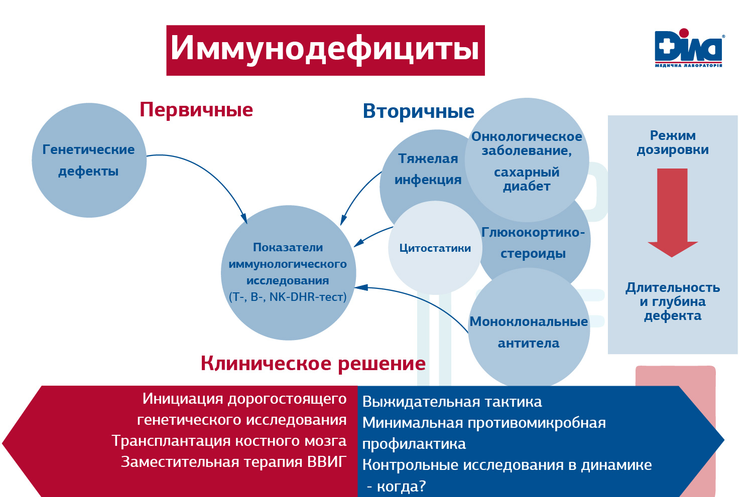 Анализ показателей иммунологического обследования в сопоставлении с клинической картиной, данными анамнеза и получаемого лечения поможет избежать ошибочной трактовки.
