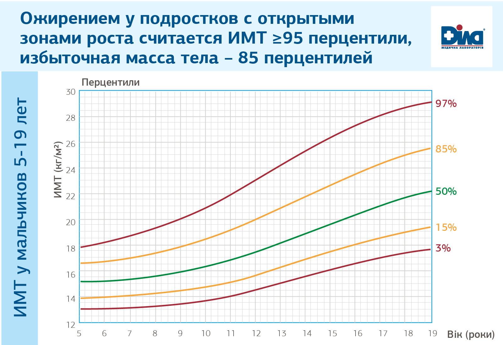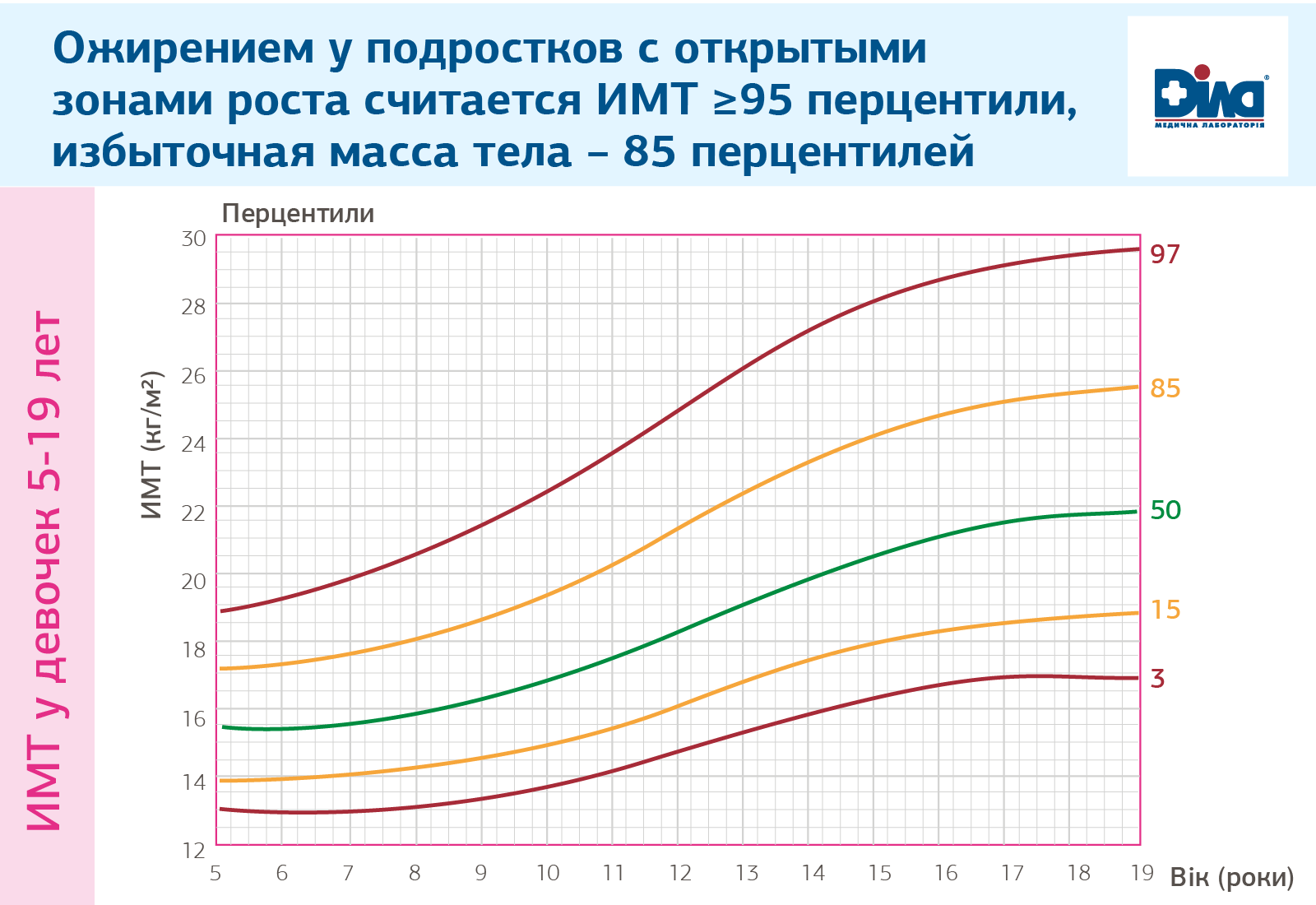 У детей с открытыми зонами роста ИМТ определяется относительно их возраста, пола и массы тела по стандартным перцинтильным таблицам. Ожирением считается ИМТ ≥95 перцинтили, избыточная масса тела – 85 перцинтили.