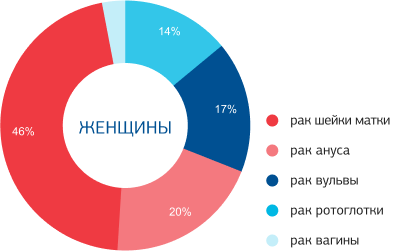 Структура новых случаев ВПЧ-ассоциированных раков у женщин и мужчин в США за 2021г.