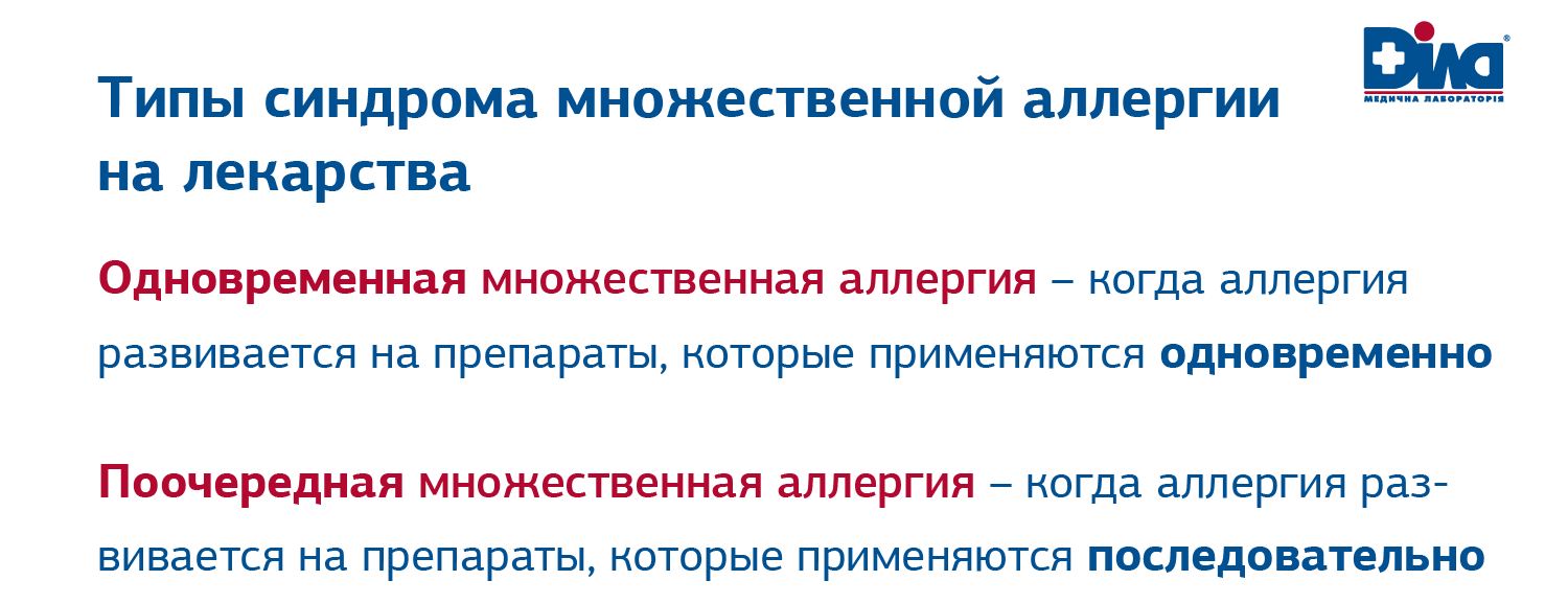 Существует 2 типа синдрома множественной лекарственной аллергии