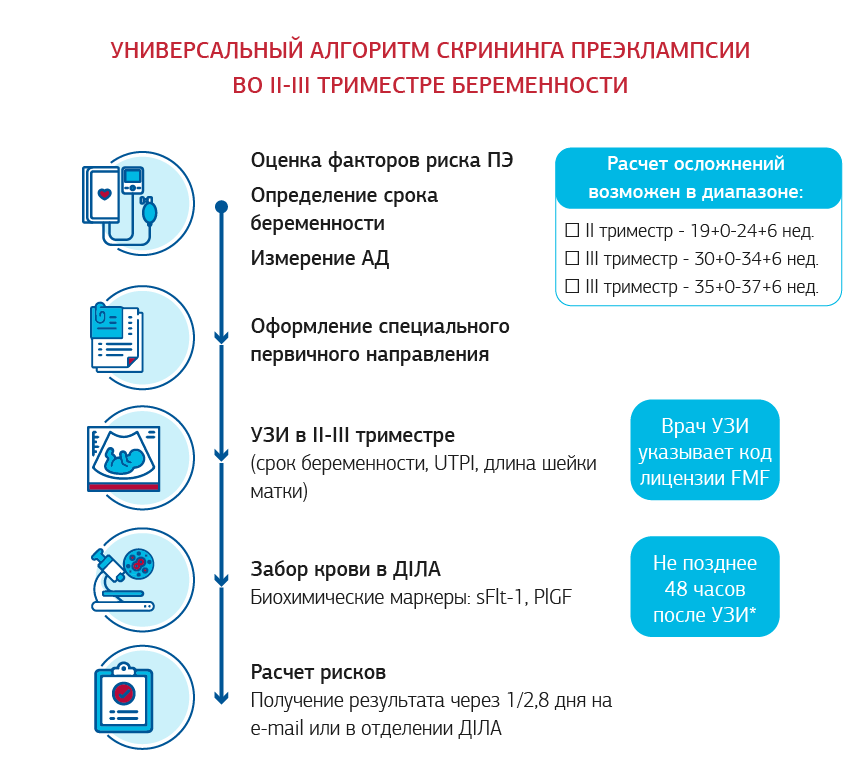 Универсальный алгоритм комплексного скрининга преэклампсии и преждевременных родов на примере исследования «Соотношение sFlt-1/PLGF с расчетом риска преэклампсии во ІІ, ІІІ триместрах, Astraia»