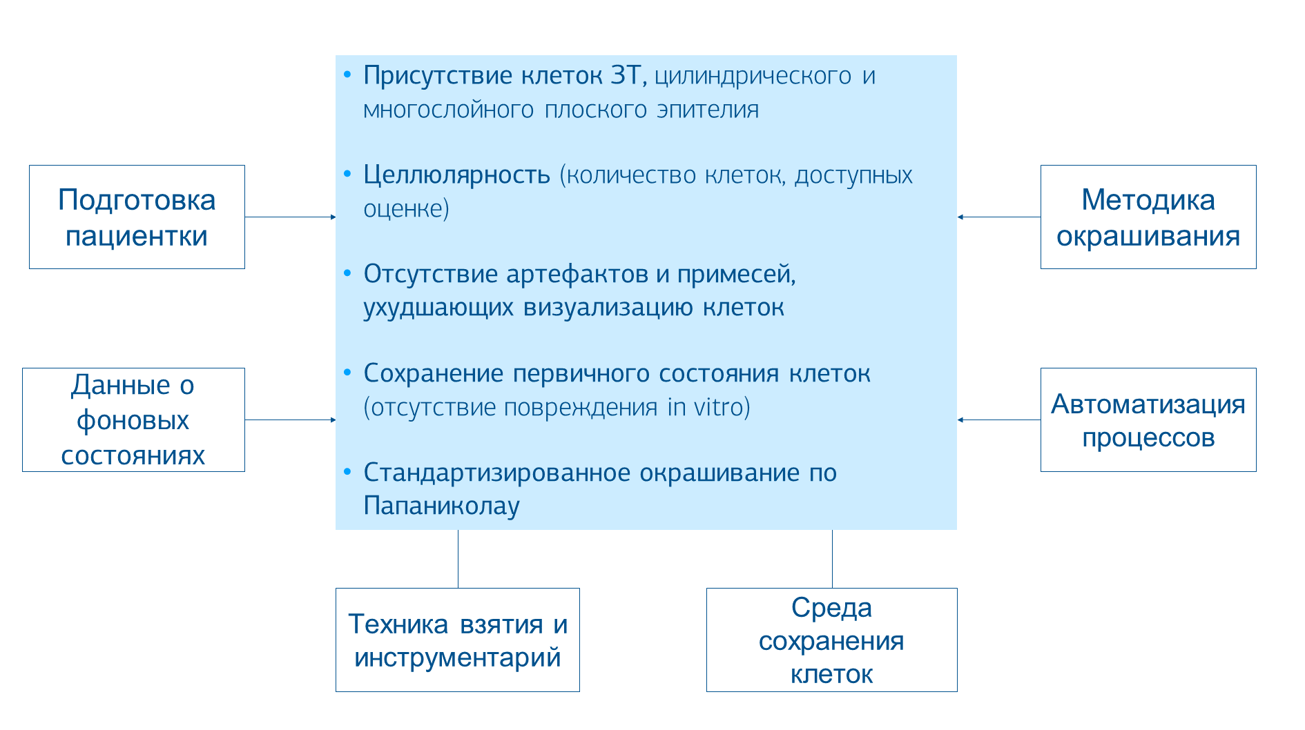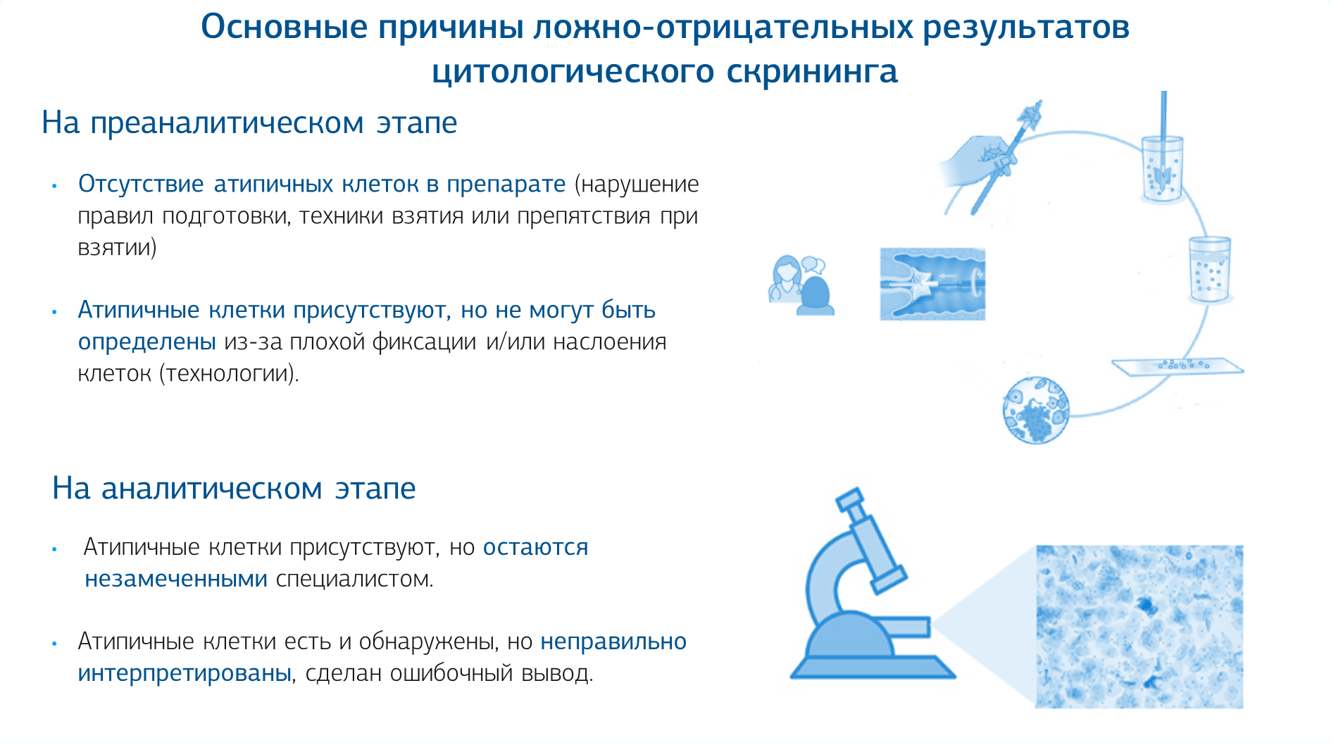 Таким образом, для эффективности цитологической составляющей цервикального скрининга (Пап-тест) важны как аналитический, так и преаналитический этапы.