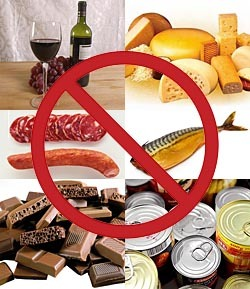 Реакции часто развиваются при употреблении в пищу продуктов, содержащих повышенное количество гистамина, тирамина. К таким продуктам относятся различные виды сыра, красного вина, полуфабрикаты, которые были ферментированы и консервированы: мясные и рыбные консервы, колбасы и ветчина, маринованные помидоры и огурцы, сельдь, а также шоколад, шпинат, какао-бобы, пивные дрожжи и т. д. Еще одной причиной развития псевдоаллергии являются различные пищевые добавки, которые являются красителями (тартазин и нитрит натрия), консервантами (бензойная кислота, глутамат натрия, салицилиат), ароматизаторами, загустителями и др. |
