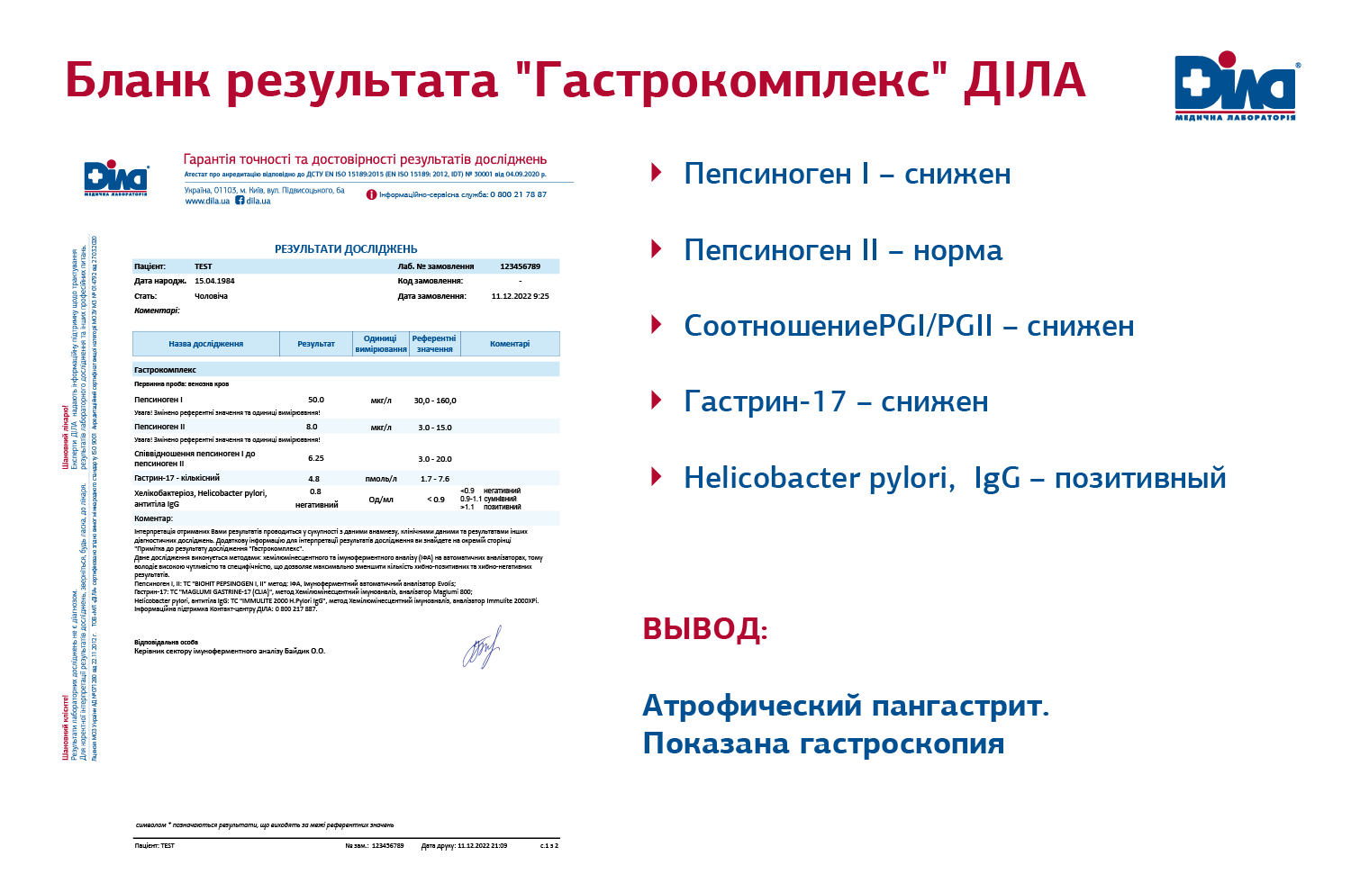 Пример: бланк заключения Гастрокомплекс - Атрофический атрофический Пангастрит