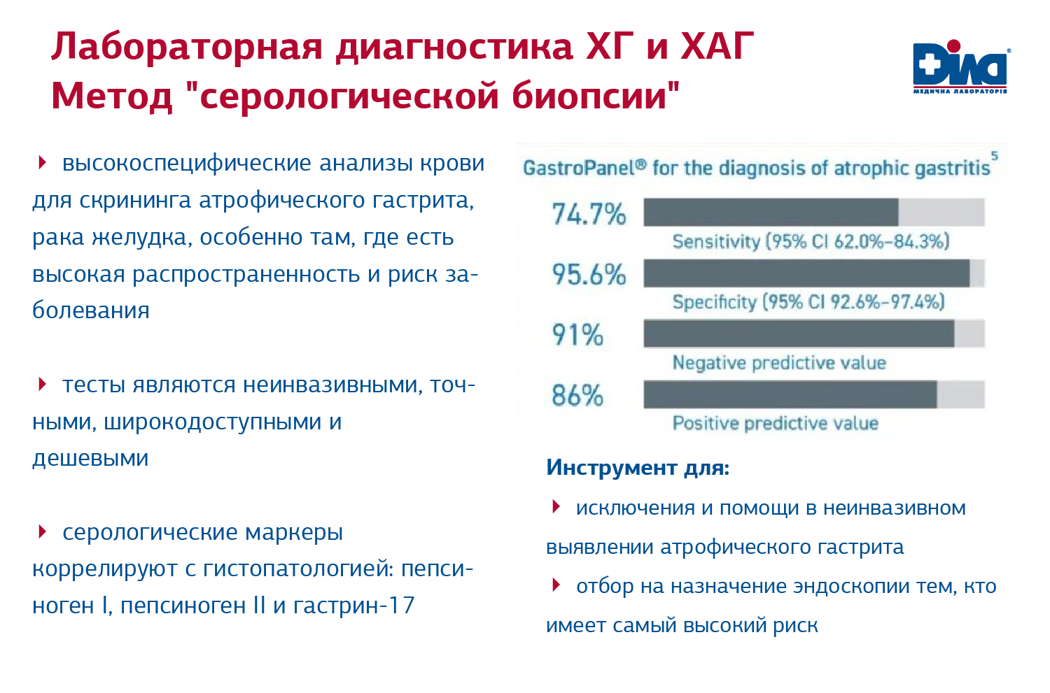 Таким образом, сравнивая с гистологией (инвазивность, вариабельность, правдивость, чувствительность, субъективность, время и стоимость), серология обеспечивает точные и объективные подходы для оценки состояния одновременно всей слизистой оболочки желудка из одного образца крови.