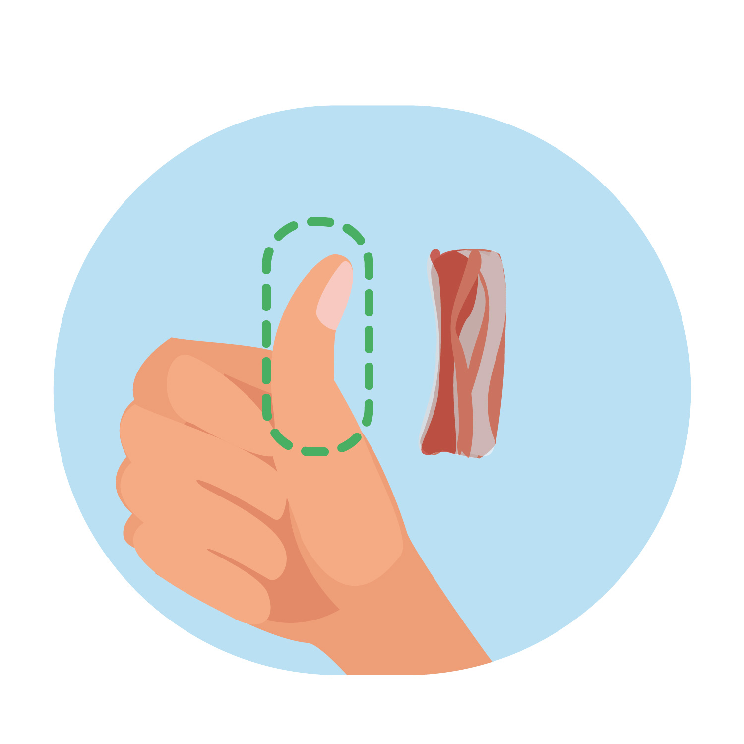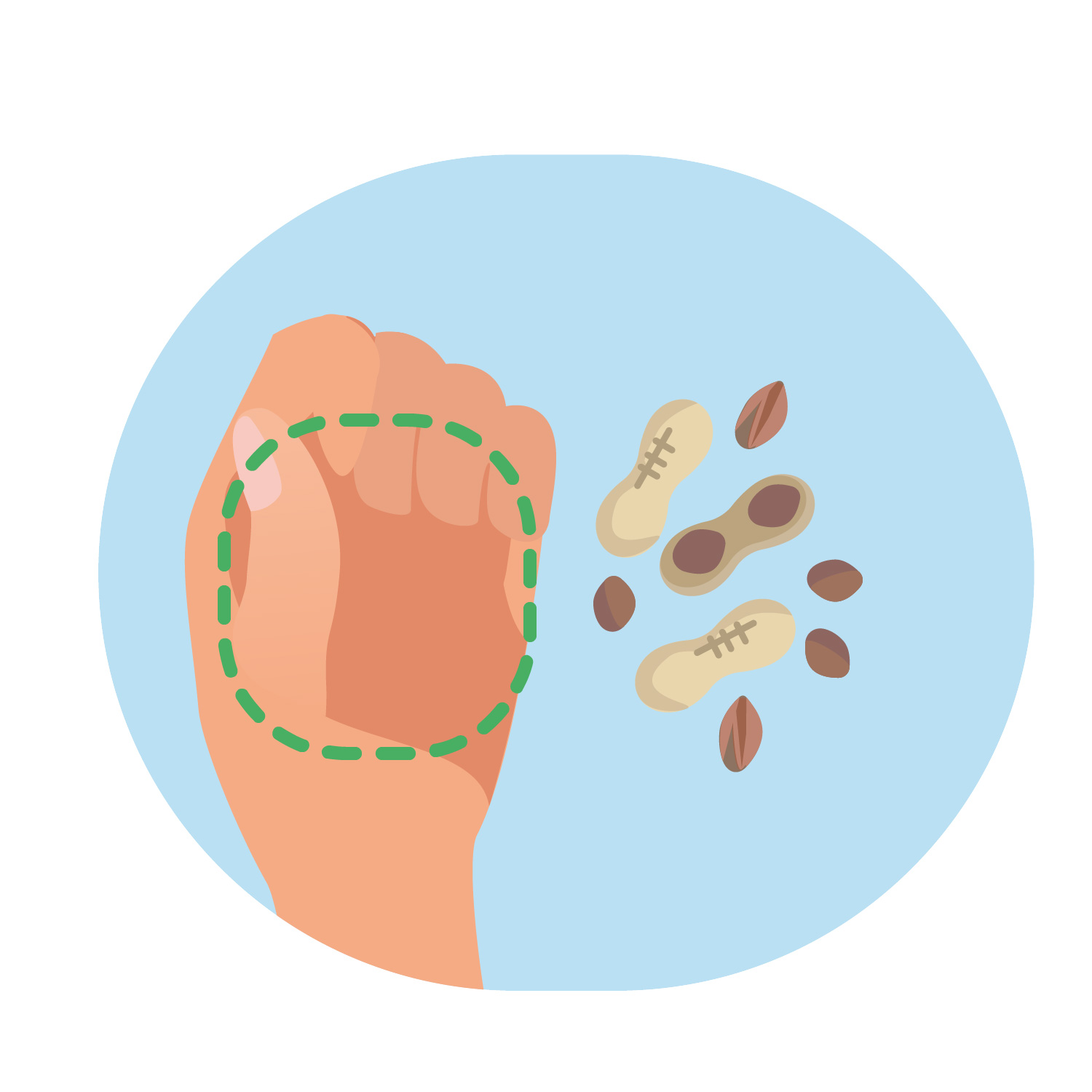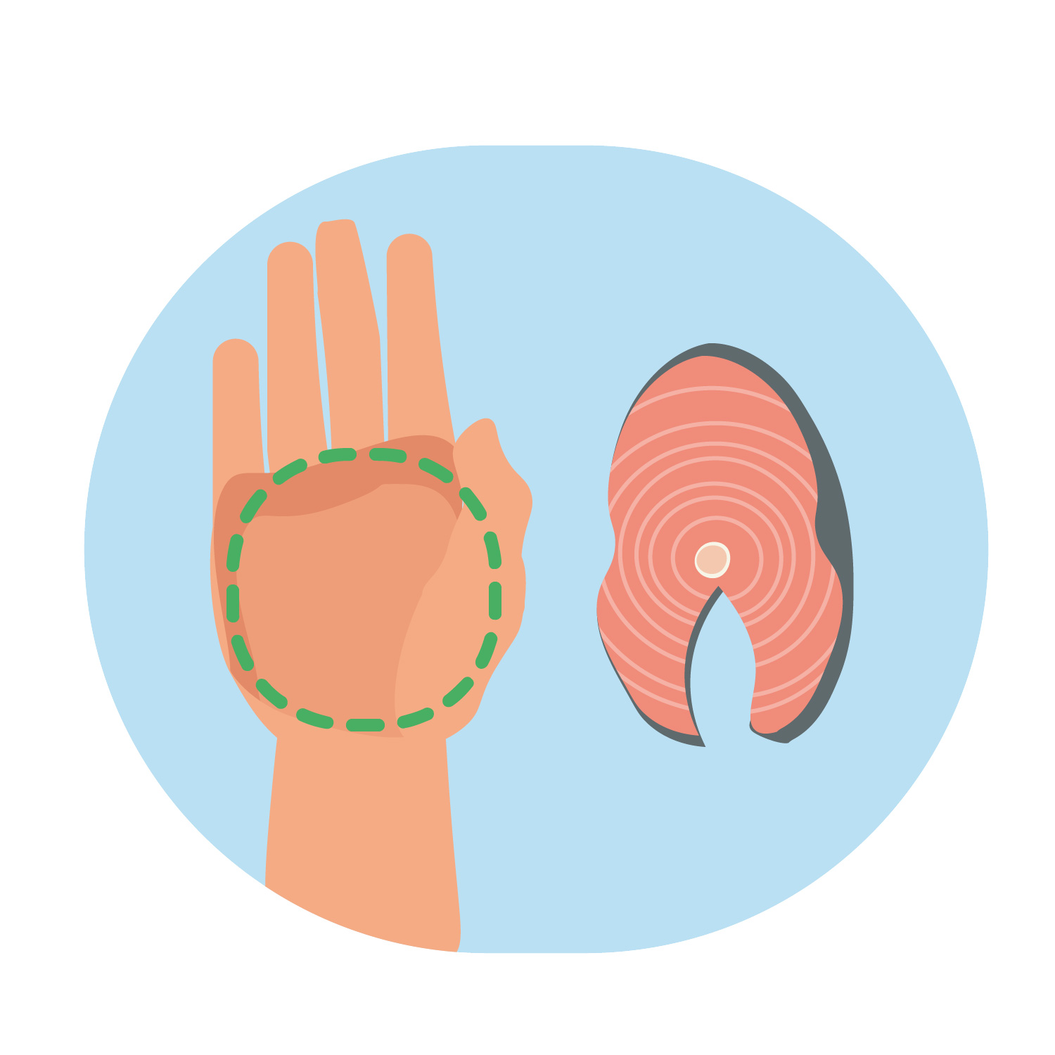Для каждого человека он разный, в зависимости от пола, возраста и конституции. Для упрощения можно использовать так называемый «метод ладони», предполагающий измерение порции с помощью собственных рук.