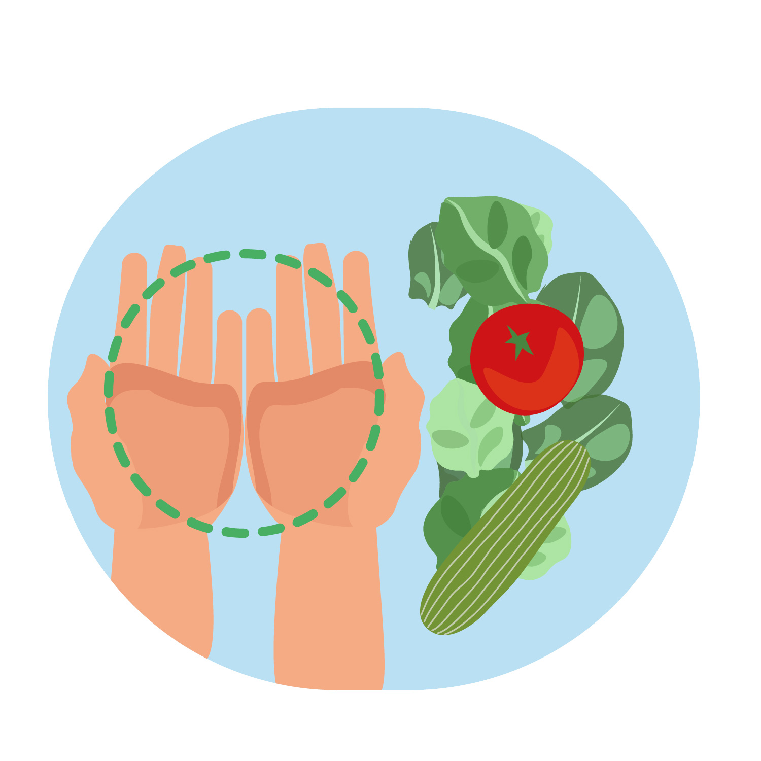 • зелень и овощи должны уместиться в две раскрытые ладони