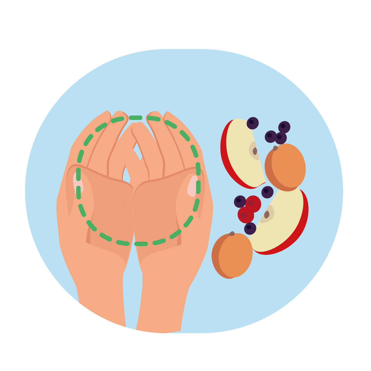 Одна порция составляет определенный участок одной или обеих ладоней: