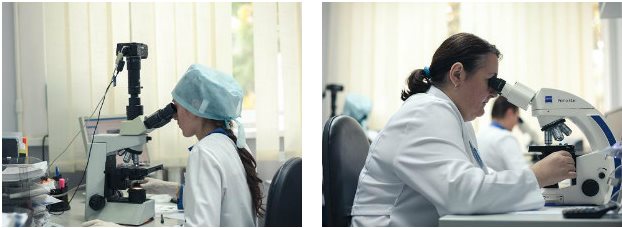 Рис.12. Врачи-цитологи просматривают препараты под микроскопом