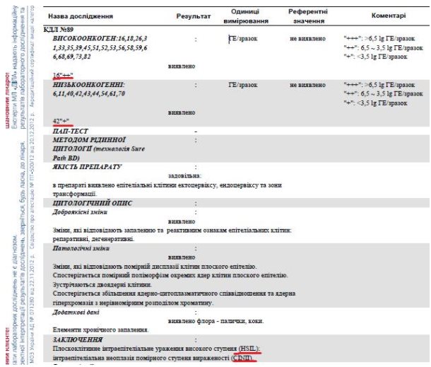 вирус папилломы человека (ВПЧ), «Комплексное генотипирование ДНК ВПЧ в полуколичественном формате методом REAL TIME: 19 высокоонкогенных 16, 18, 31, 33, 35, 39, 45, 52, 56, 58, 59 26, 51, 53, 66, 68, 69, 73, 82 и 9 низкоонкогенных: 6, 11, 40, 42, 43, 44, 54, 61, 70»