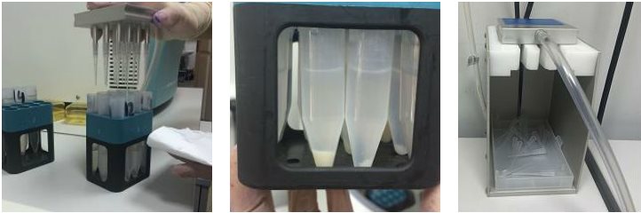Рис. 9. Автоматический перенос клеточных образцов из центрифужной пробирки на предметное стекло (слева)