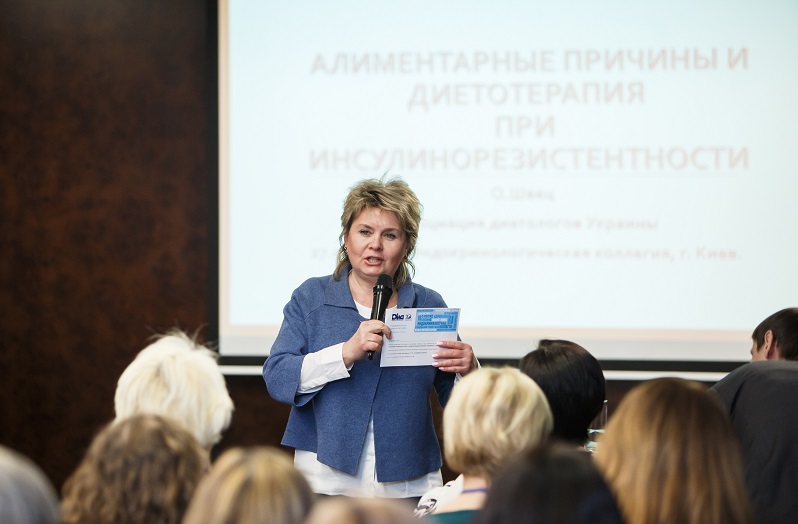 Президент Ассоциации диетологов Украины доцент Швец Олег Витальевич, сосредоточил внимание аудитории на новейших взглядах влияния диетотерапии на преодоление инсулинорезистентности. Доклад спикера был наполнен интересными диагностическими случаями из многолетней клинической практики. Значительный клинический интерес у практикующих врачей вызвало рассмотрение спикером основ средиземноморской диеты как оптимального питания для пациентов с инсулинорезистентностью. В заключение докладчик отметил что обязательным является индивидуальный подход, психологическая поддержка пациента, физическая активность.