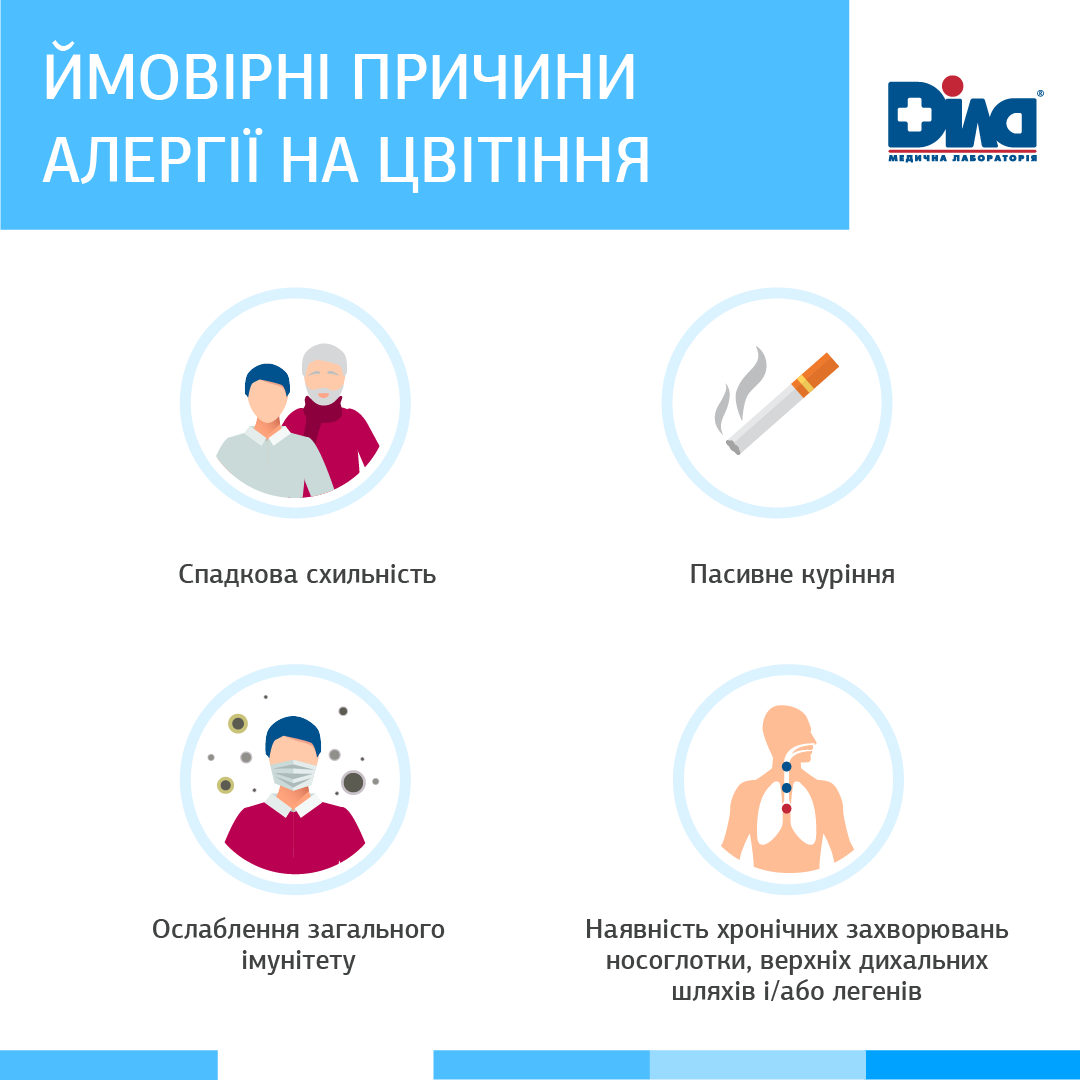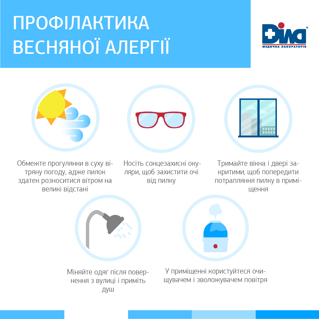 При подозрении на аллергию на пыльцу деревьев специалисты медицинской лаборатории ДІЛА рекомендуют провести скрининговое исследование - скрининг ингаляционной аллергии «Phadiatop», которое позволит определить, обусловлены ли наблюдающиеся симптомы аллергией, а для детей до 4-летнего возраста, имеющих проявления поллиноза в сочетании с проявлениями пищевой аллергии - скрининг «Phadiatop Infant» – смесь аллергенов пыльцы и пищевых аллергенов.
