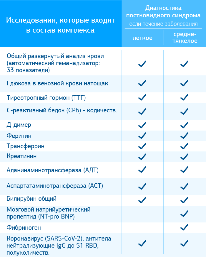 ДІЛА предлагает комплексные исследования для оценки постковидного синдрома – Диагностика постковидного синдрома (легкое течение заболевания) и Диагностика постковидного синдрома (среднее-тяжелое течение заболевания). Они позволят своевременно выявить риски развития серьезных осложнений и при необходимости назначить лечение.