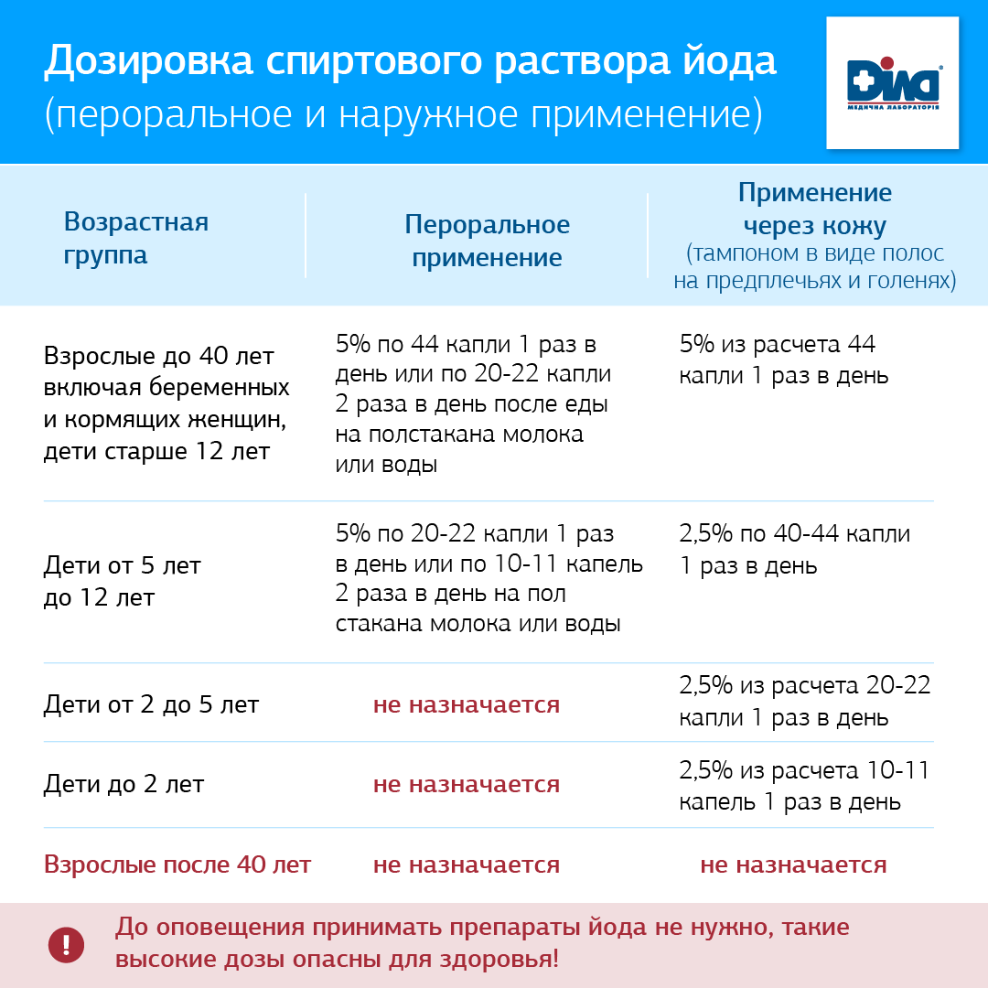 Для йодопрофилактики украинцам доступно два препарата – спиртовой и водный растворы йода. Схемы приема и дозировки следующие: